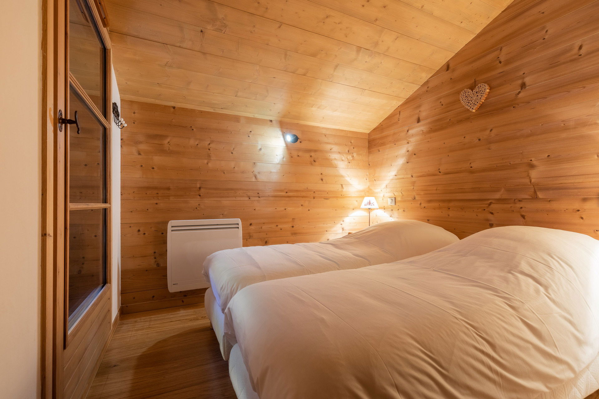 - CHAMBRE (8.51 m²) : 1 LIT 2 PLACES (160), porte-fenêtre, accès balcon sud, vue route des Confins / impasse de la Chavonette / montagne