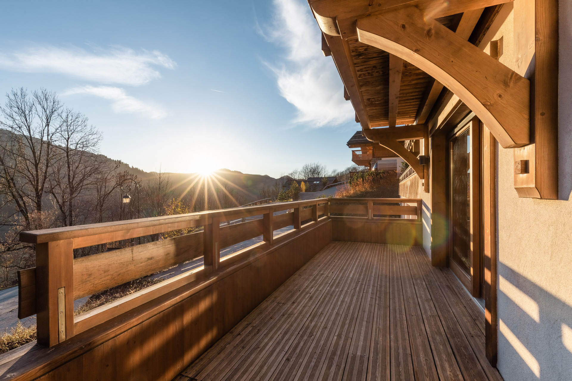 - SEJOUR (27.24 m²) : coin repas, coin salon, POELE à bois, TV écran plat, 1 CANAPE LIT-RAPIDO 2 PLACES (140), porte-fenêtre est, vue espaces verts / résidences voisines, baie vitrée, accès terrasse sud, vue route des Confins / impasse de la Chavonette / montagne