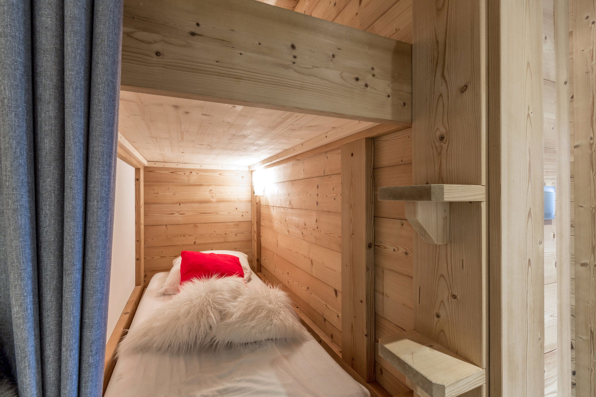 - COIN MONTAGNE (6.35 m²) : 2 LITS 1 PLACE (80) = partie inférieure d'un lit mezzanine (lit supérieur interdit -6 ans), fenêtre est, vue résidence / piste