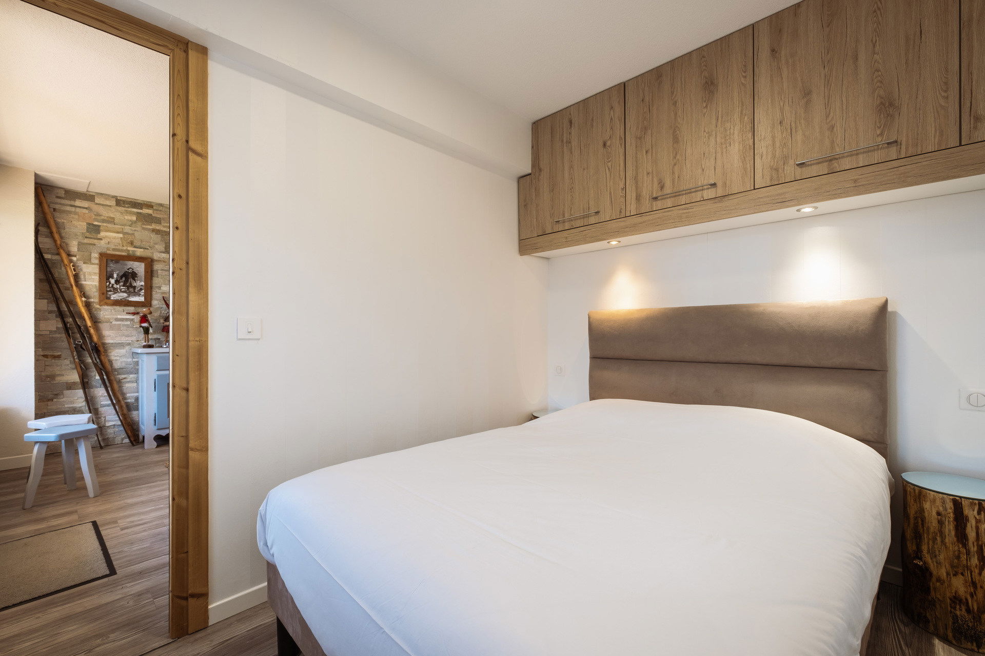 - COIN MONTAGNE (6.19 m²) : 1 LIT 2 PLACES (140), fenêtre sud, vue chalets voisins / pistes / montagne