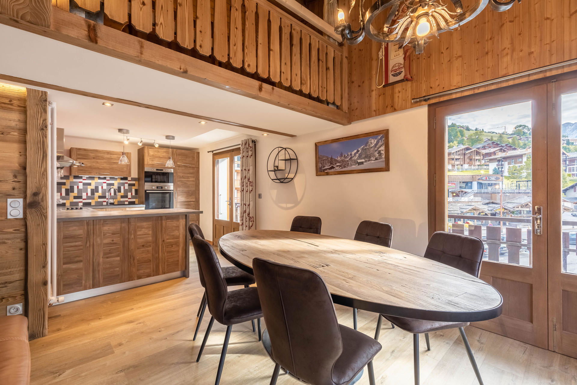 - SEJOUR (36.98 m²) : coin repas, canapé, TV écran plat, CHEMINEE DECORATIVE, porte fenêtre, accès balcon est, vue Parking de la Perrière / résidences voisines / montagnes, baie fixe + porte fenêtre, accès balcon sud, vue résidences voisines / pistes / montagne