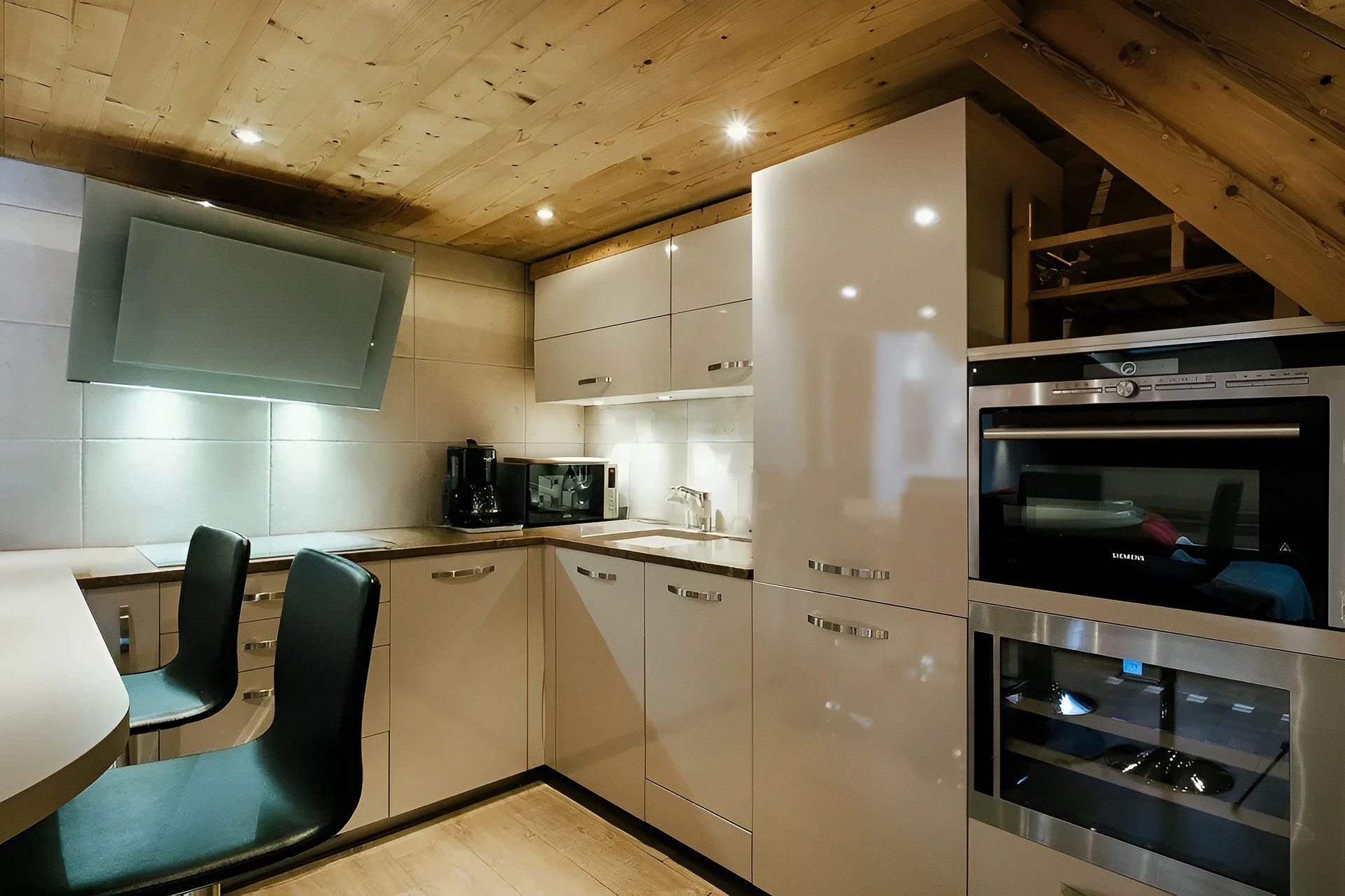 - CUISINE ouverte sur séjour : réfrigérateur + congélateur (274 L), four, TABLE INDUCTION, MICRO ONDES, LAVE-VAISSELLE, CAVE A VINS, machine à café NESPRESSO