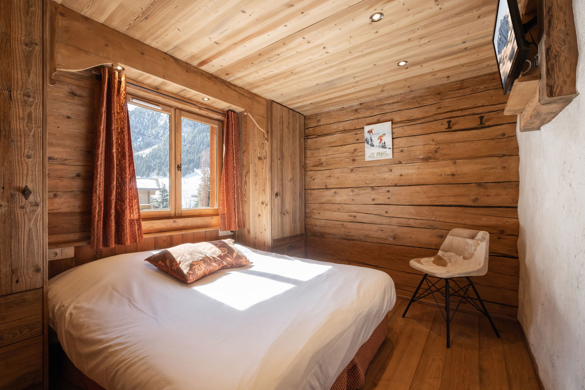 - CHAMBRE (9.19 m²) : 1 LIT 2 PLACES (160), petite TV écran plat, fenêtre est, vue chalet voisin / montagne
