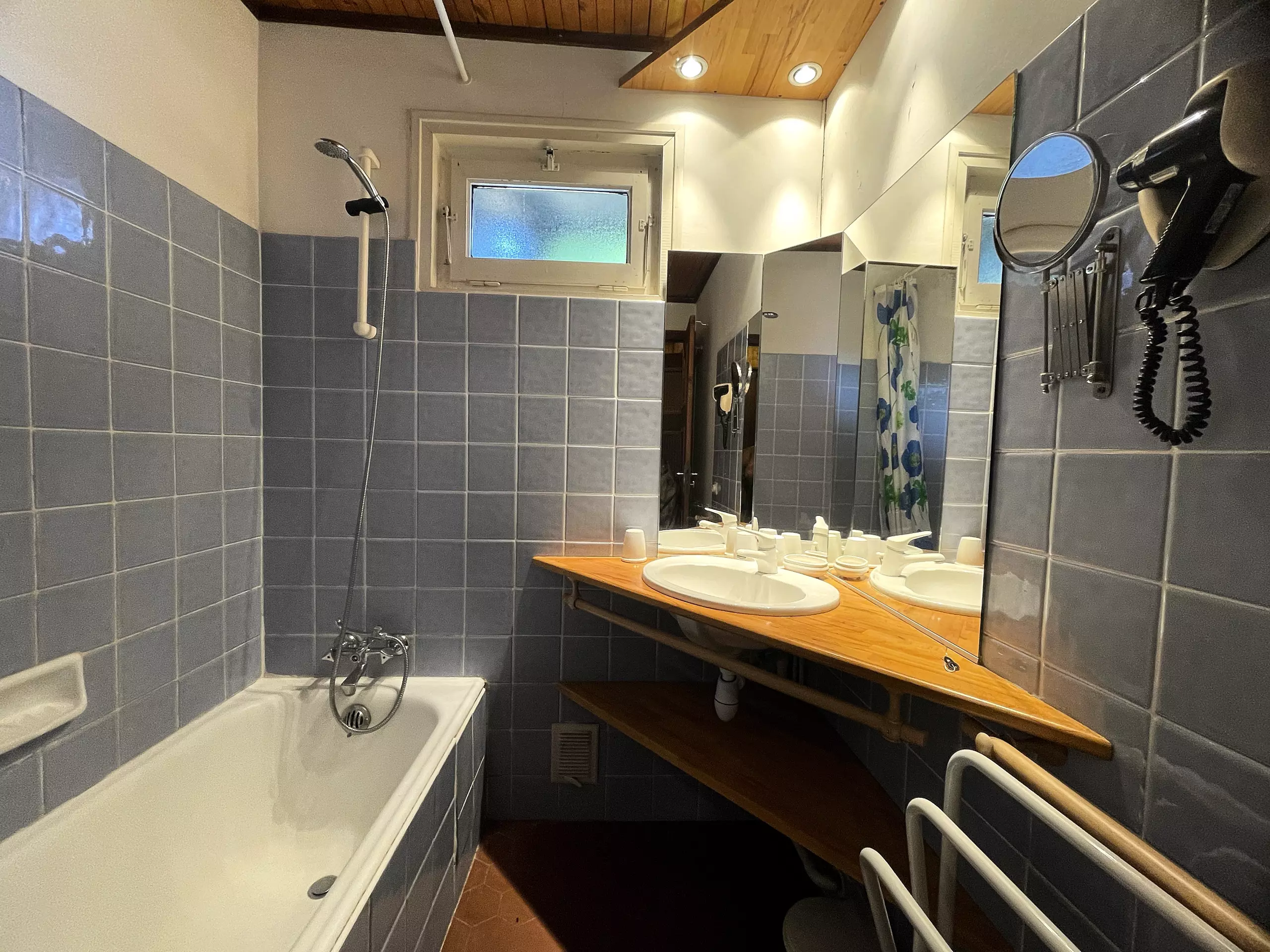 SALLE DE BAINS de 3 m²: vasque, sèche serviette, baignoire, W.C indépendant,