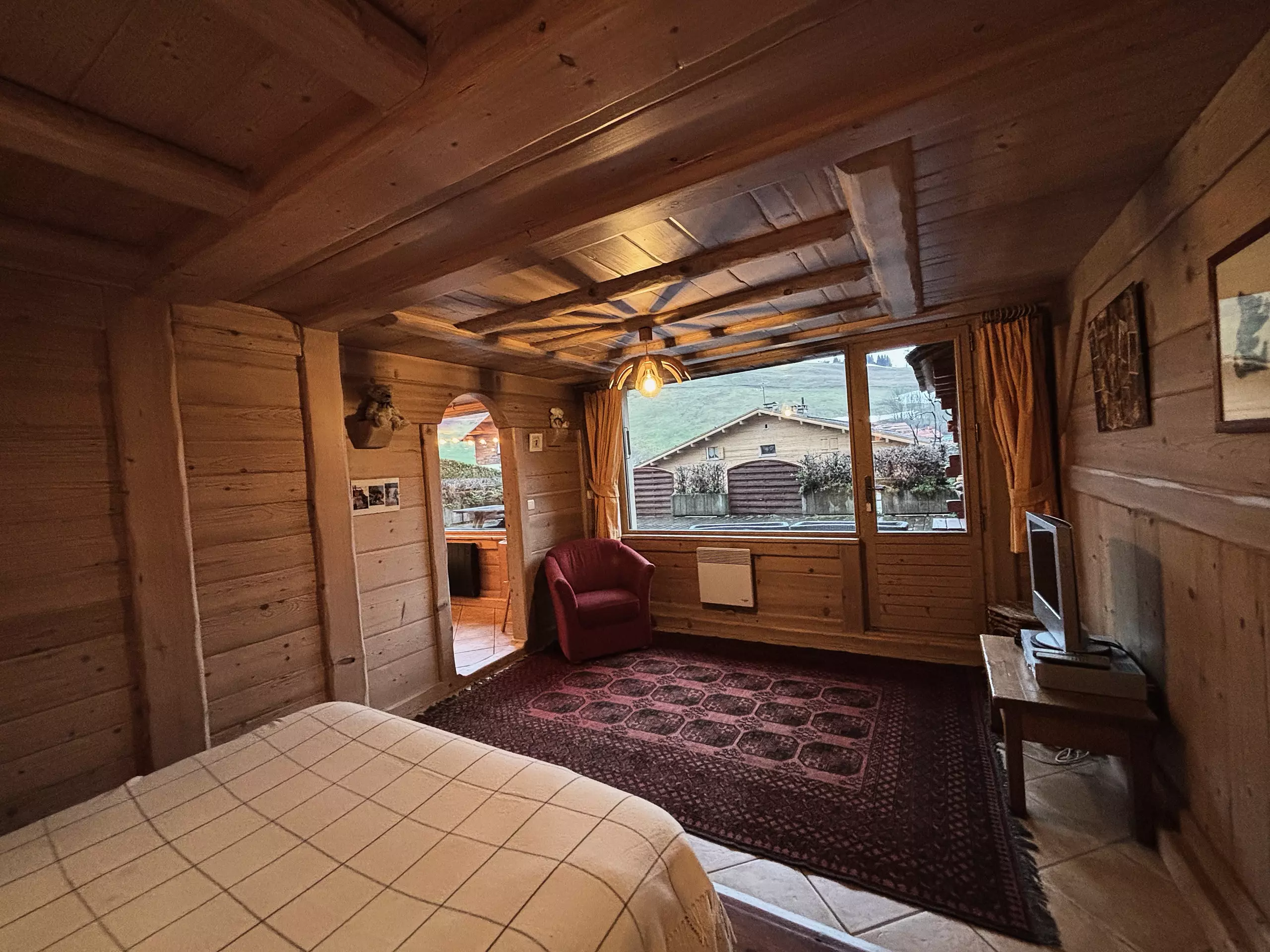 - CHAMBRE (19.67 m²) : 1 lit 2 places (140), télévision, lecteur DVD, WC indépendant (0.93 m²), baie + porte-fenêtre sud, terrasse sud de plain-pied,