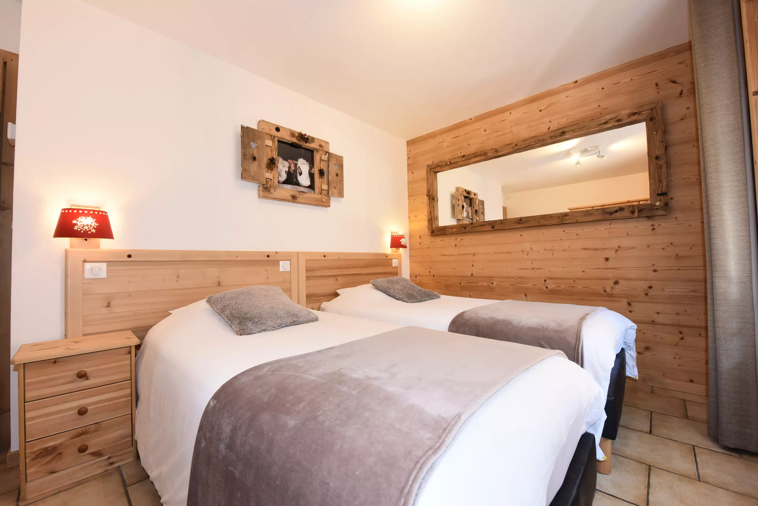 CHAMBRE 1: 2 lits simples en 90 (possibilité de former un lit double de 180), armoire, fenêtre,